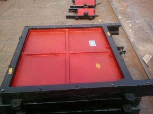 衡水雲(yún)瑞水利機(jī)械有限公司生產(chǎn)的大型鑄鐵閘門主要由閘框、閘板、吊座及緊閉斜鐵等零部件組成。為克服以往鋼門易銹蝕的缺點(diǎn),閘框、閘板全采用鑄鐵組成,其中閘框又由上橫梁、下橫梁、左直梁、右直梁組成。大型鑄鐵閘門為了制造、運(yùn)輸、安裝方便,閘板一般根據(jù)其大小或高度情況由上下幾部分拼裝組成。