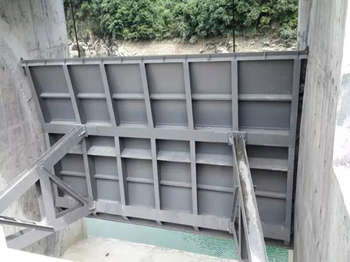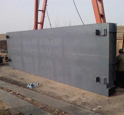 鋼閘門門體一般采用面板與加強(qiáng)肋的結(jié)構(gòu),面板可做平面或拱形。門體一般整體鑄造和機(jī)加工,但尺寸較大的可采用分塊組成式。門體上一般采用整體式金屬止水,兼作支承滑塊,金屬止水用同材料制作的沉頭螺釘緊固在門體上,螺釘頭部與止水工作面一起精加工,一些尺寸較大的也可"P"形橡皮止水。