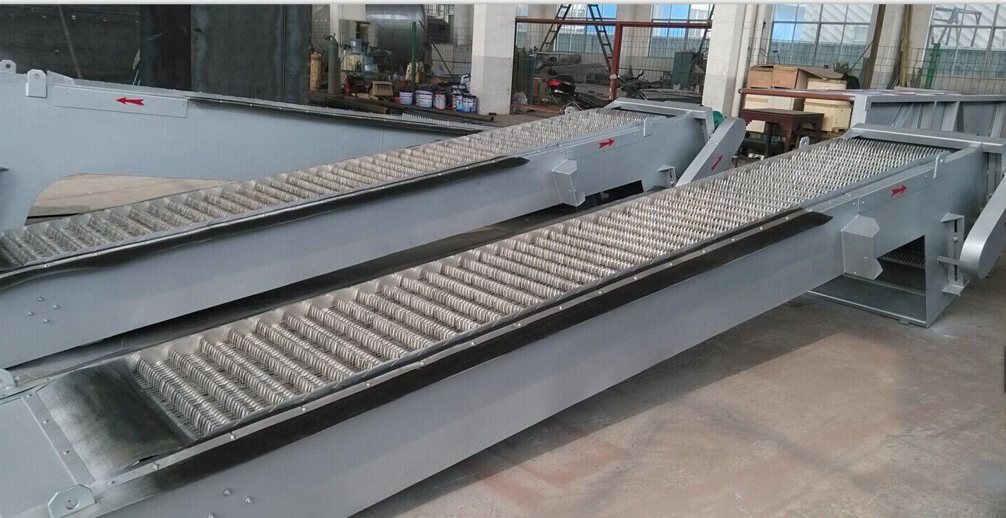 在污水處理前工序中,攔截、清除各種固體顆粒物、漂浮物等。使后續(xù)處理工序得以順利進(jìn)行。是市政污水、工業(yè)污水;紡織、造紙等處理過(guò)程中攔污、除渣的關(guān)鍵設(shè)備。該機(jī)有柵齒柵齒軸、鏈板等組成柵網(wǎng),以替代傳統(tǒng)格柵的柵條。柵網(wǎng)在機(jī)架內(nèi)作回轉(zhuǎn)運(yùn)動(dòng),從而將污水中的懸浮物攔截并不斷分離水中的懸浮物,因而工作效率高,運(yùn)動(dòng)平穩(wěn)格柵前后水位差小,并且不堵塞。