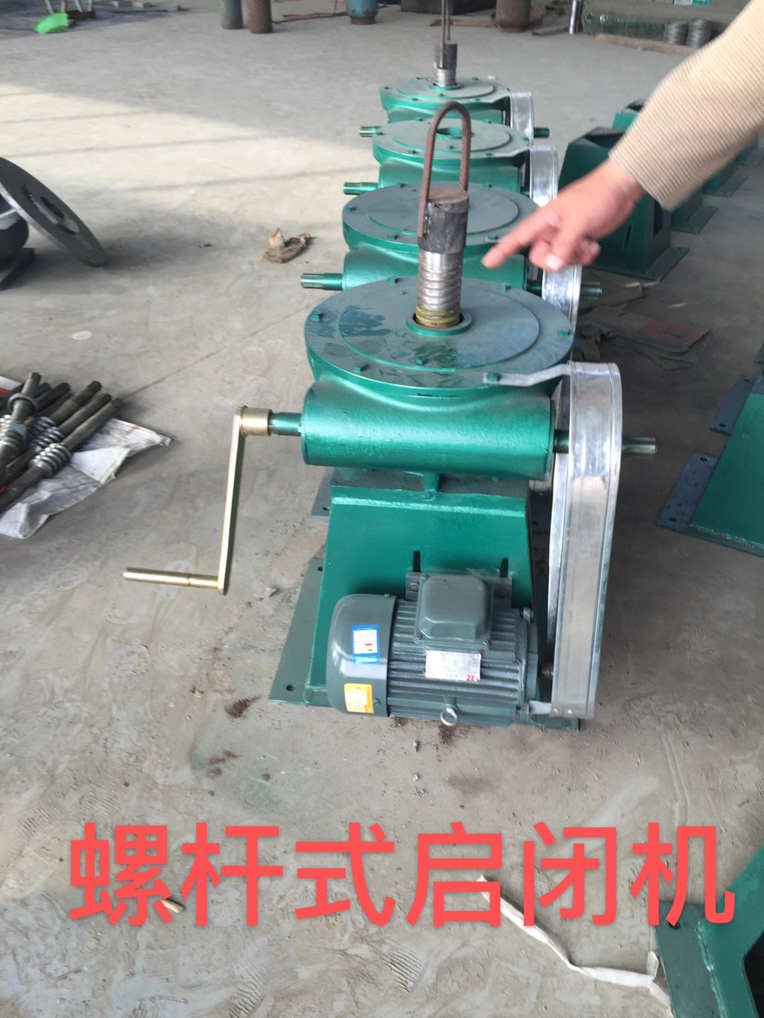 2、將手動(dòng)螺桿啟閉機(jī)置與安裝位置,把一個(gè)限位盤套在螺桿上,將螺桿從橫梁的下部旋入機(jī)器中,當(dāng)螺桿從機(jī)器的上方露出后,再套上限位盤。螺桿的下方與閘門鏈接。